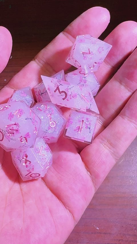 9 Polyhedral Resin D and D Dice Set Blossom Veil Petal