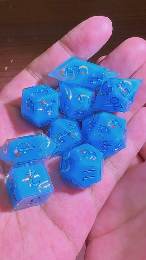 9 Polyhedral Resin D&D Dice Set Azure Heart Oath