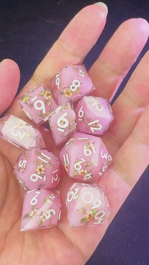 9 Polyhedral Resin DD Set Dice Blossom Fresh Flower