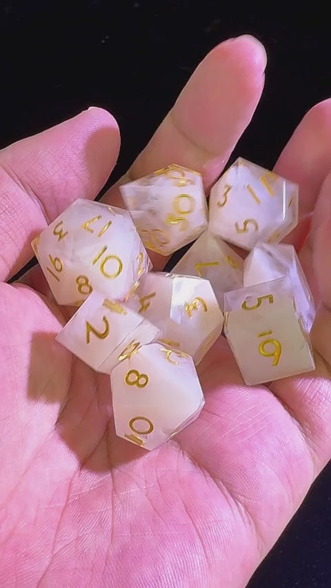 9 Polyhedral Resin Dice D and D Set White Clouds