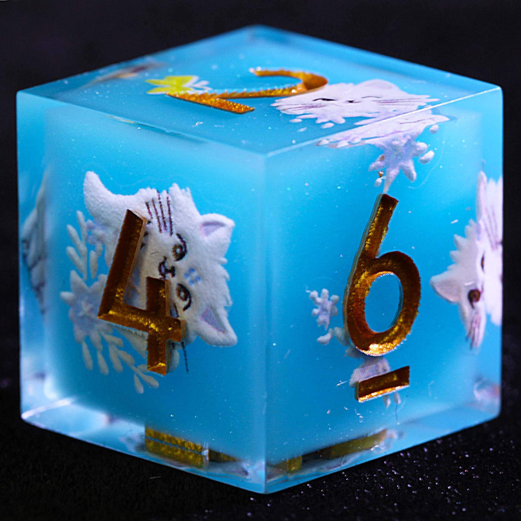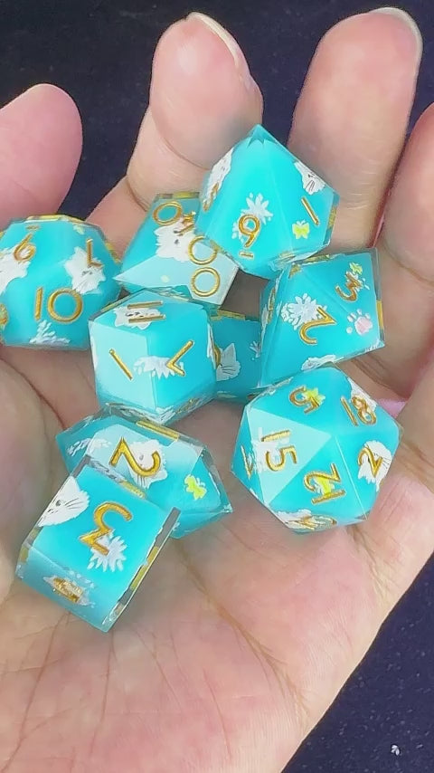 9 Polyhedral Resin Dice D and D Sets Blue Cat & Flower