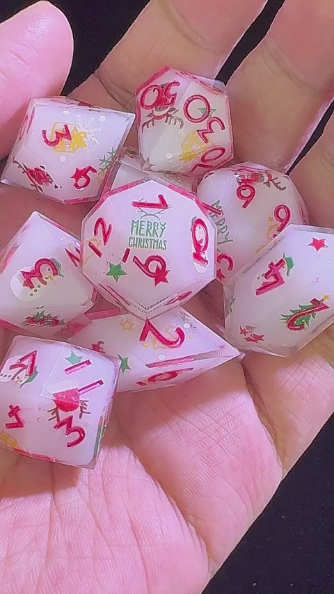 9 Polyhedral Resin Dice Set D and D Merry Christmas