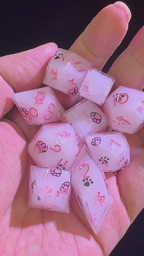 9 Polyhedral Resin Dice Set D&D Pink Cat Paws
