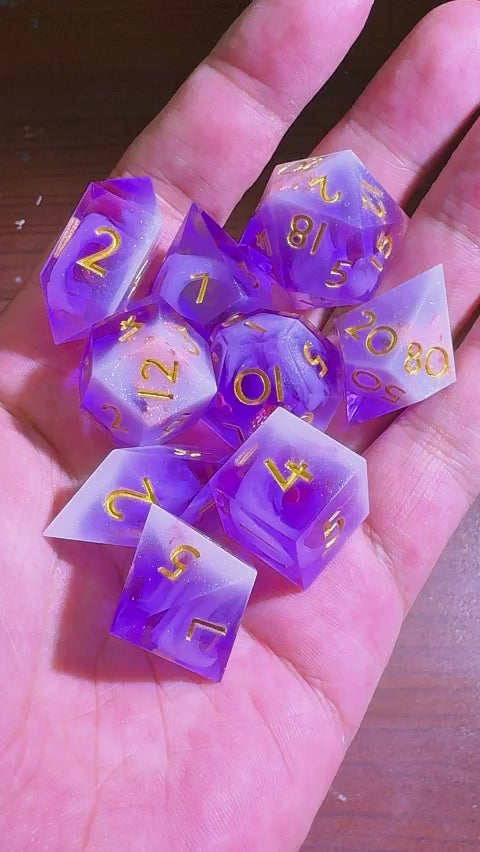 9 Polyhedral Resin DnD Dice Sets Violet Cloud Mirage