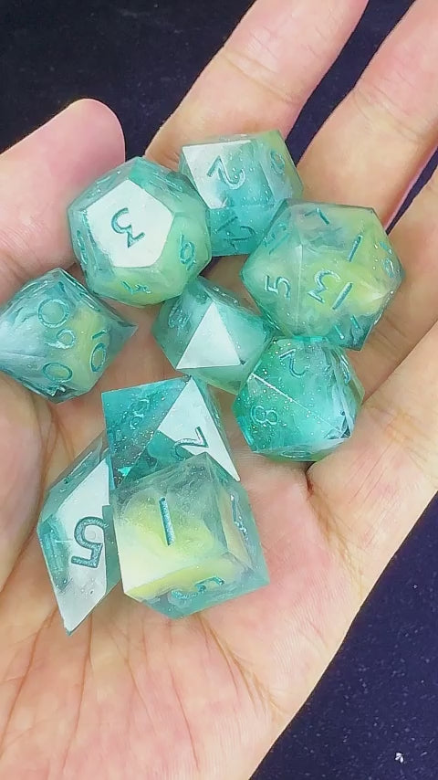 All dice sets are meticulously handmade by our skilled resin artists and undergo rigorous quality inspection to ensure they are visually stunning and perfect for casual play.