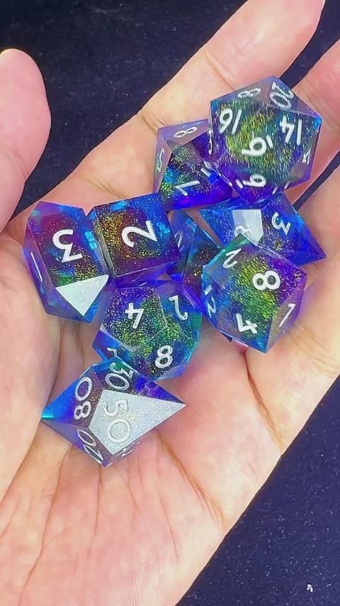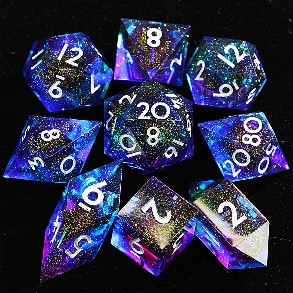 9 Polyhedral Resin Set DnD Dice Rainbow Holographic Swirl