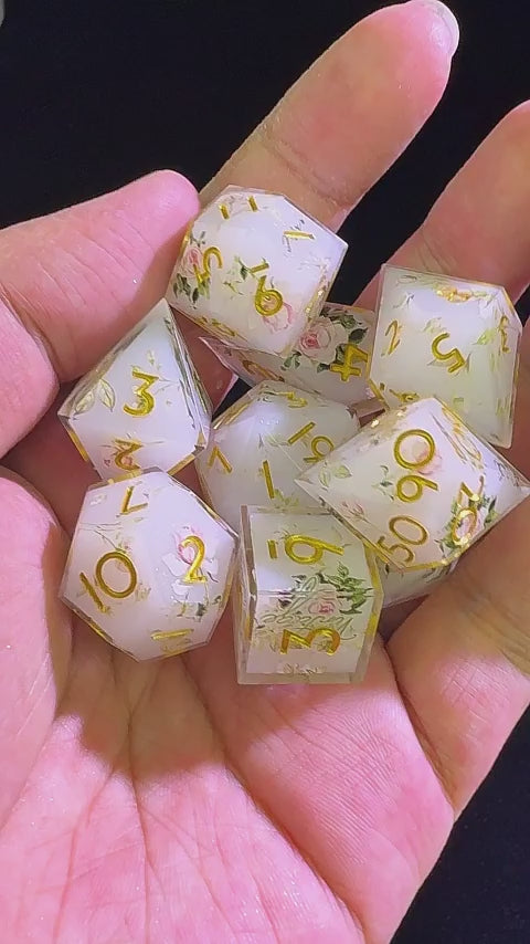 9 Polyhedral Resin Set of DD Dice Floral Whisper