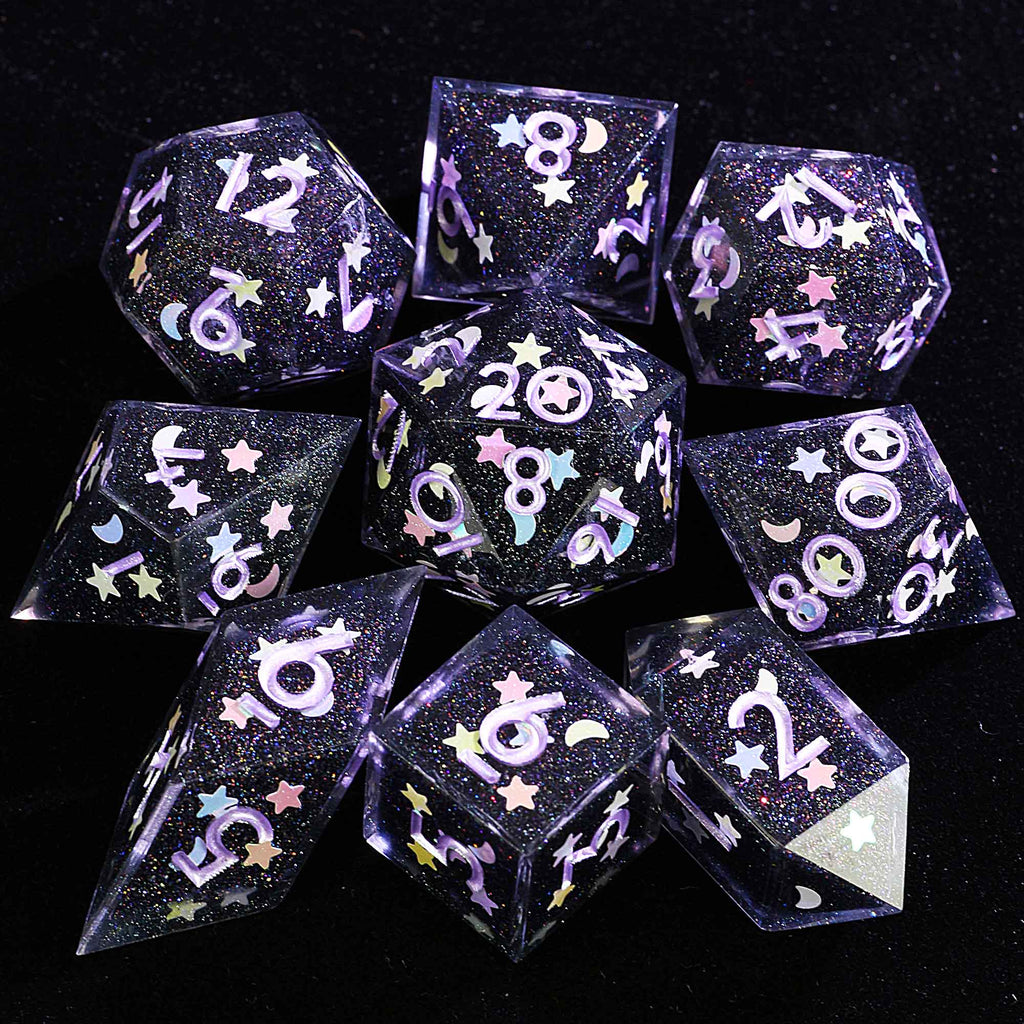 9 Polyhedral Resin Sets of DnD Dice Starry Moon Night