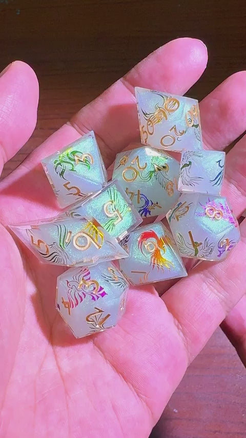 All dice sets are meticulously handmade by our skilled resin artists and undergo rigorous quality inspection to ensure they are visually stunning and perfect for casual play.