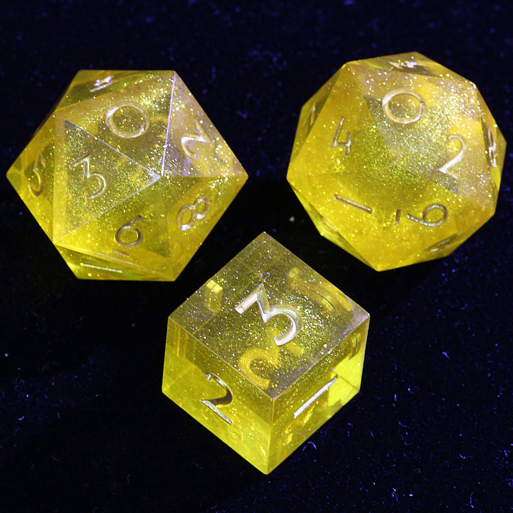 Due to the handmade nature of these dice sets, minor imperfections may occur that do not affect functionality or aesthetics. We strive to deliver the highest quality with every set.